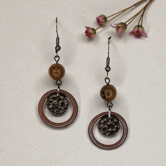 BoHo Wood and Leather looking Tan and Brown Earrings