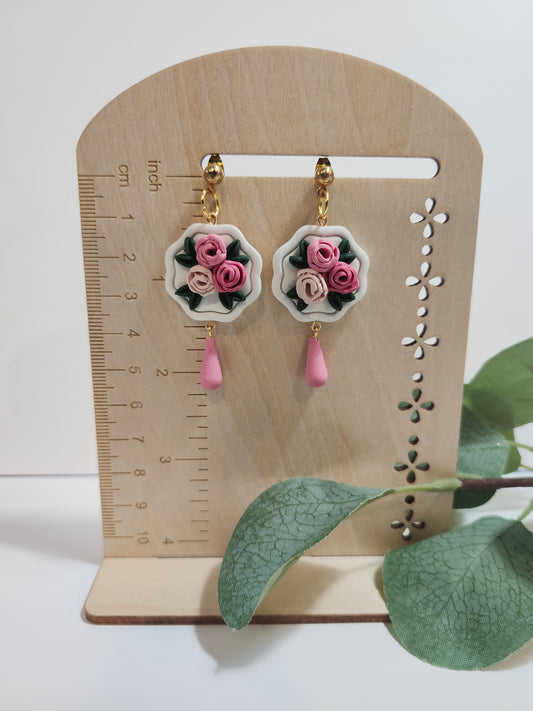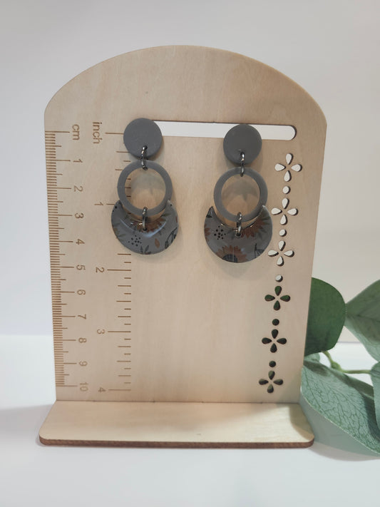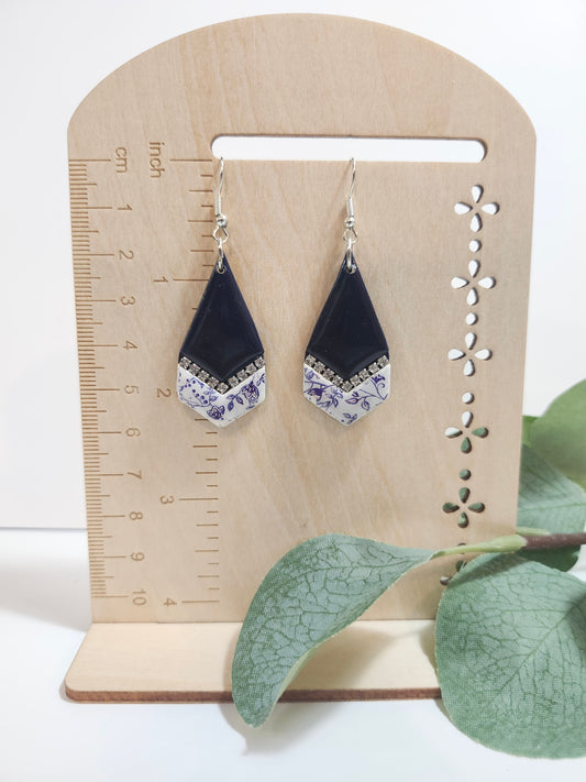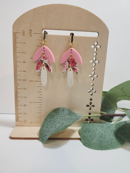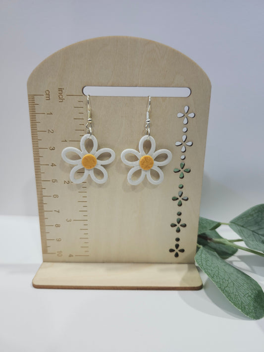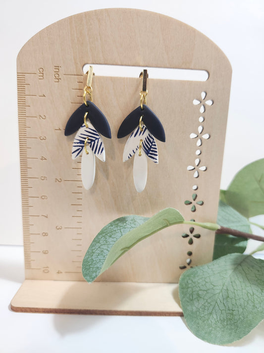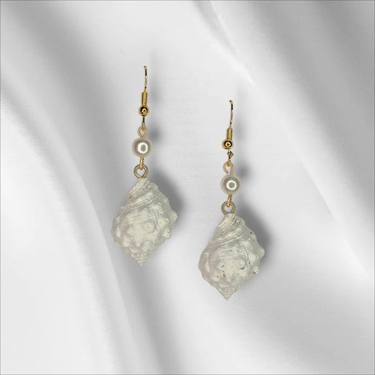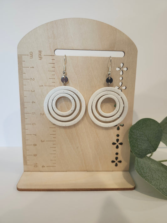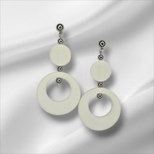 Silver Coated Lave Bead, White with silver Leaf Earrings