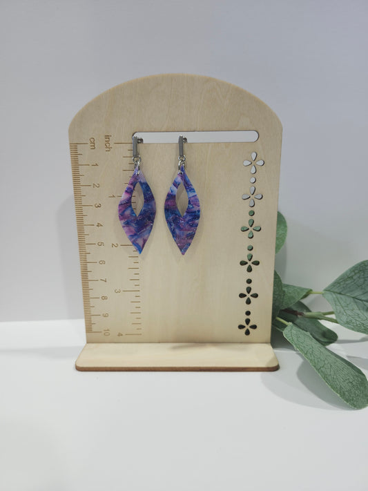 Slender Teardrop With Pink, Blue and Purple Earrings