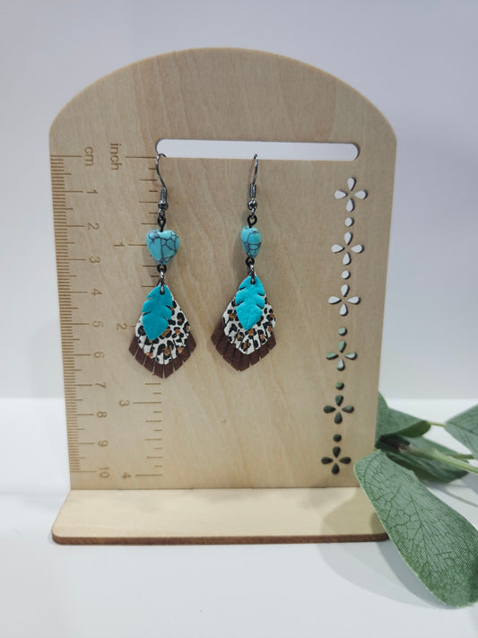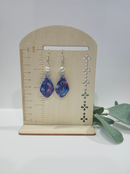 Blue And Pink with Silver Foil UV Resin Coated Earrings