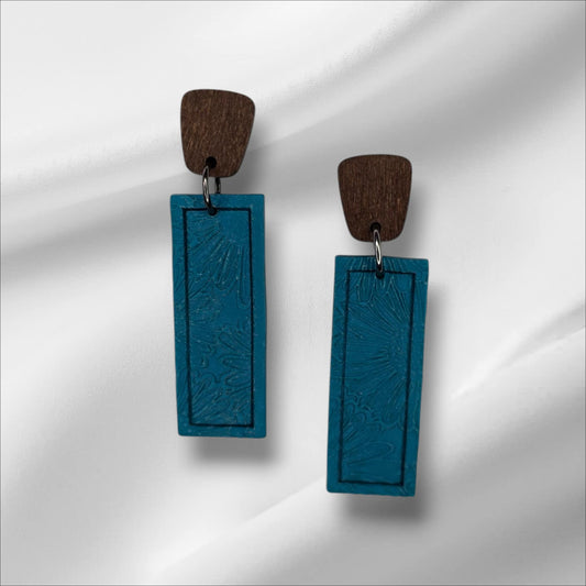 Delicate Flower Embossed Earring with Wooden Accent