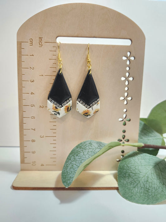 Black and Sunflower Dangle with Rhinestone Accents