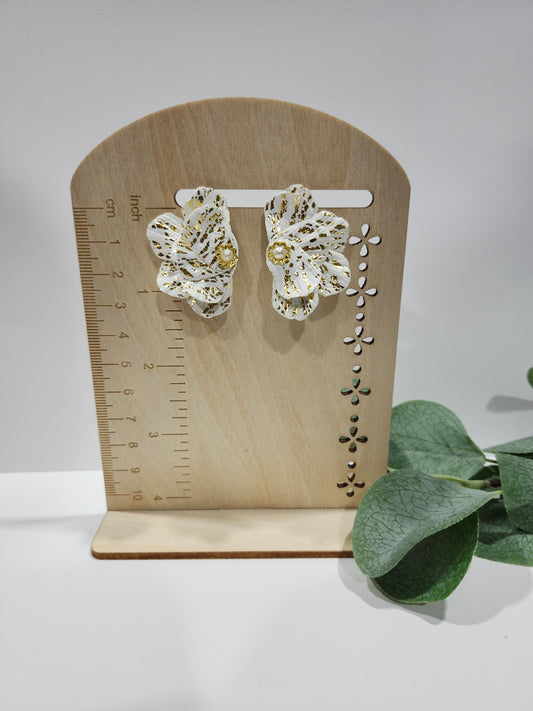 White and Gold Flower stud with a Pearl Center