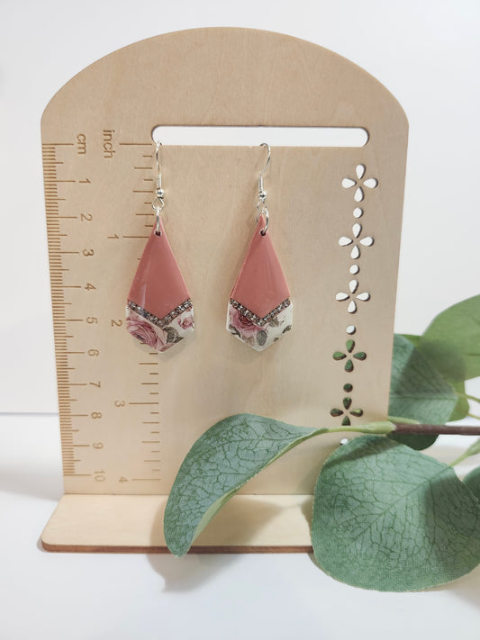Pink with Roses Dangle Earrings