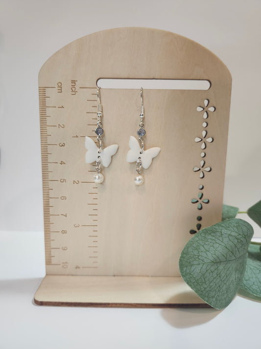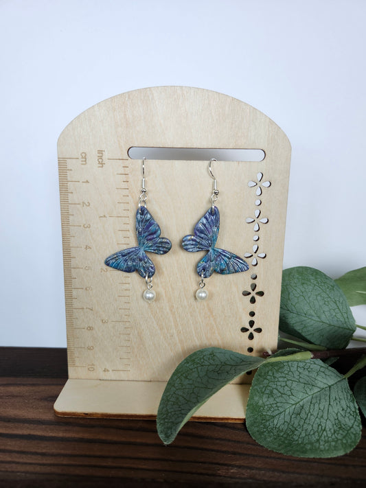 Multicolor Butterfly with a Pearl Accent Earring