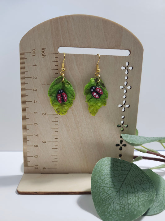 Lady Bug on a Leaf Dangle Earring