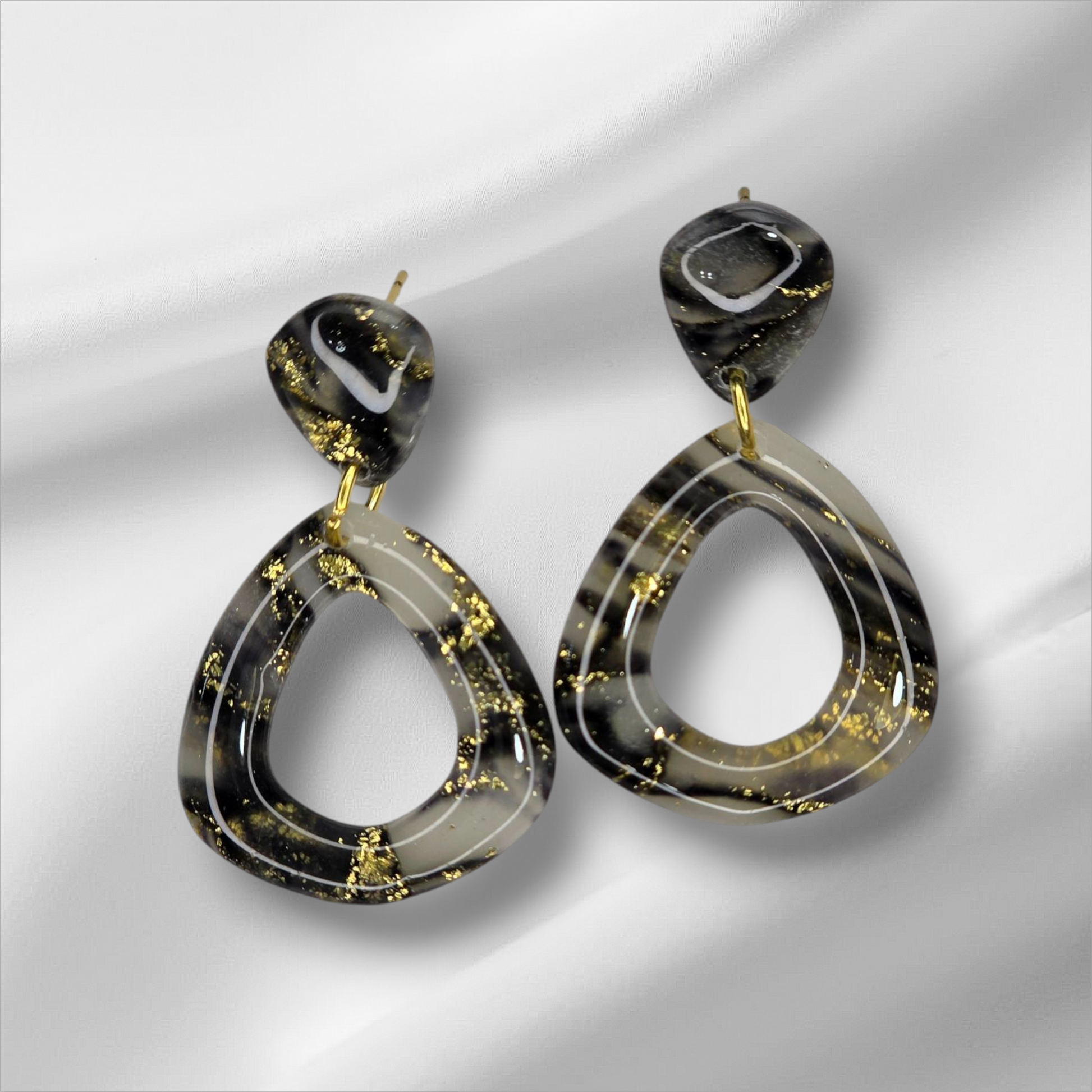 Black and Gold Leaf Dangle Earrings