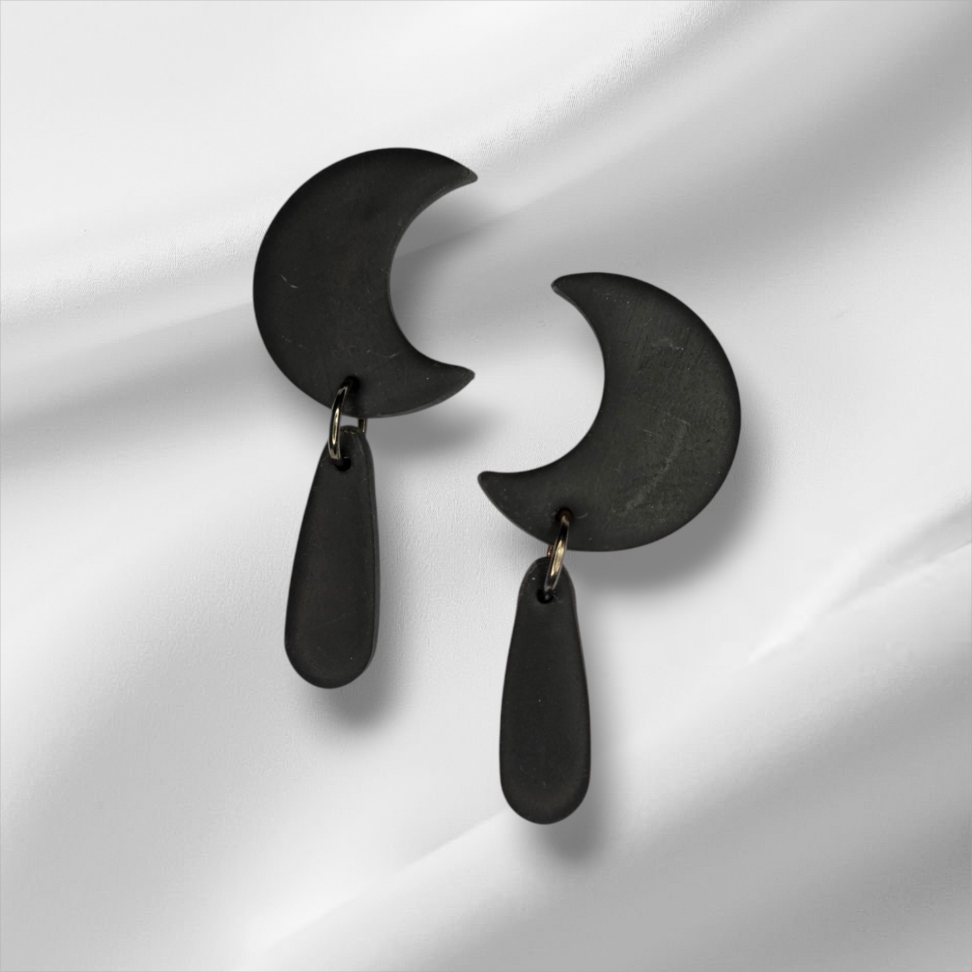 Elevate any outfit with our Black Crescent with Dangle Earrings. Made with a sleek black crescent design and dangling feature, these earrings are perfect for adding a touch of sophistication to your jewelry collection. Crafted with expert precision, these earrings are sure to impress. All hardware is hypoallergenic for your safety.