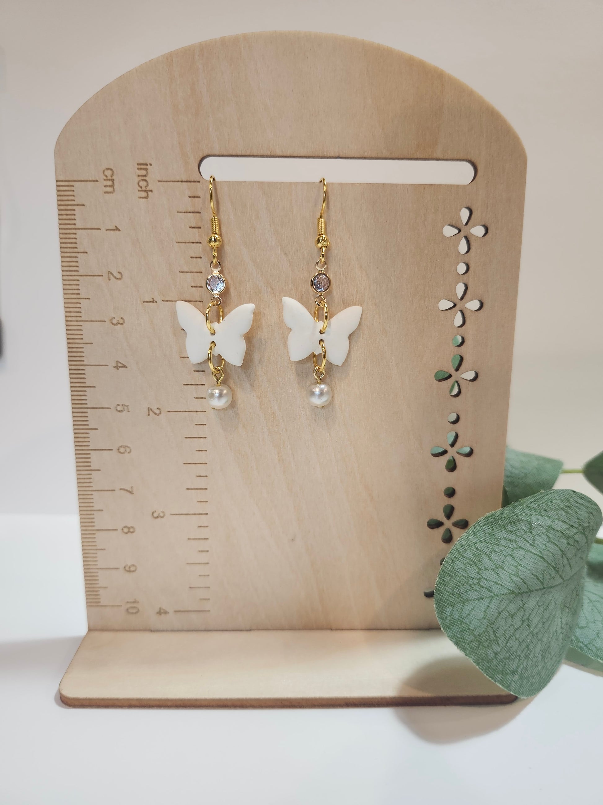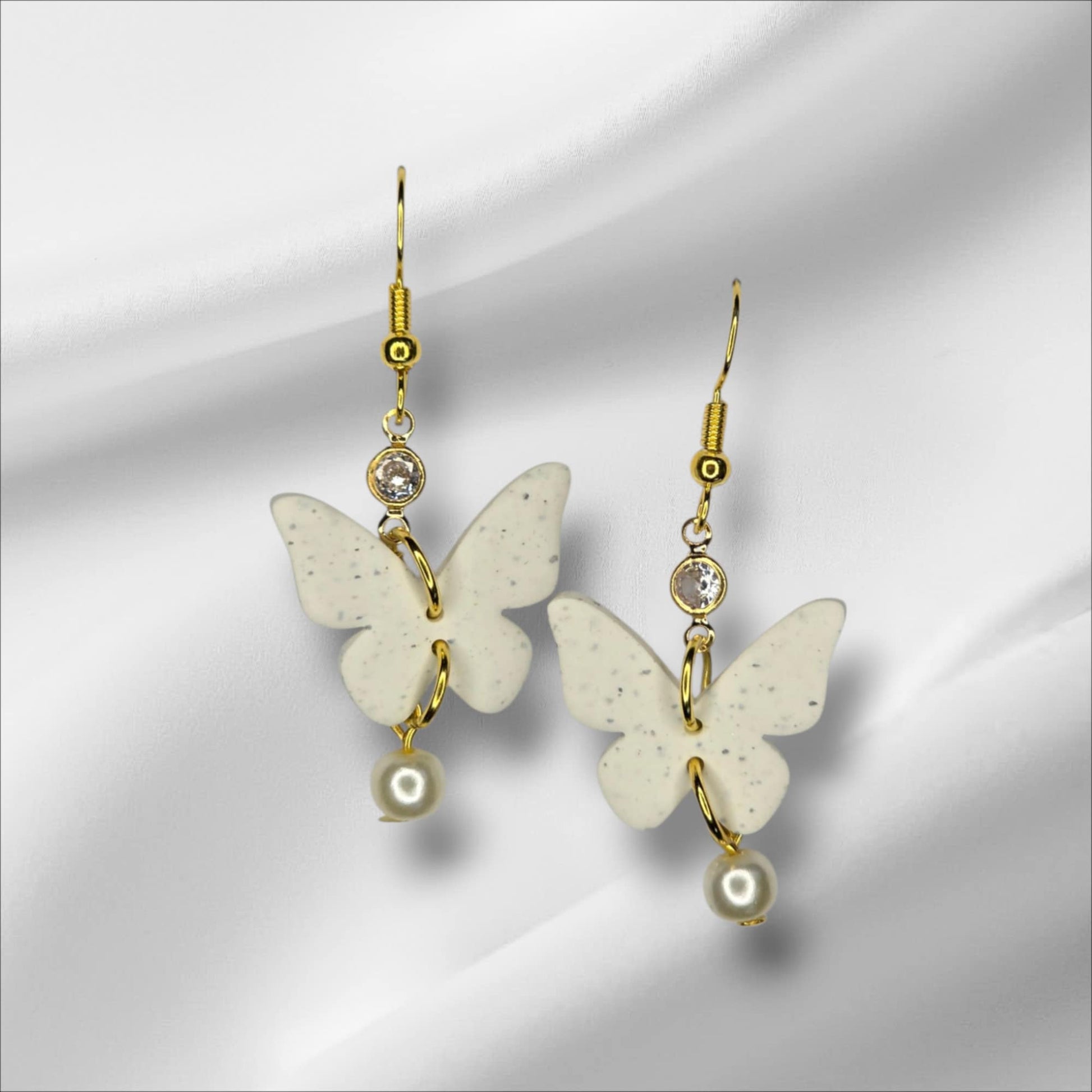 Fly high with this charming Small Butterfly with a Pearl earring! The delicate butterfly design paired with the elegant pearl will add a touch of whimsy to any outfit. Flutter your way into fashion with this unique piece.
