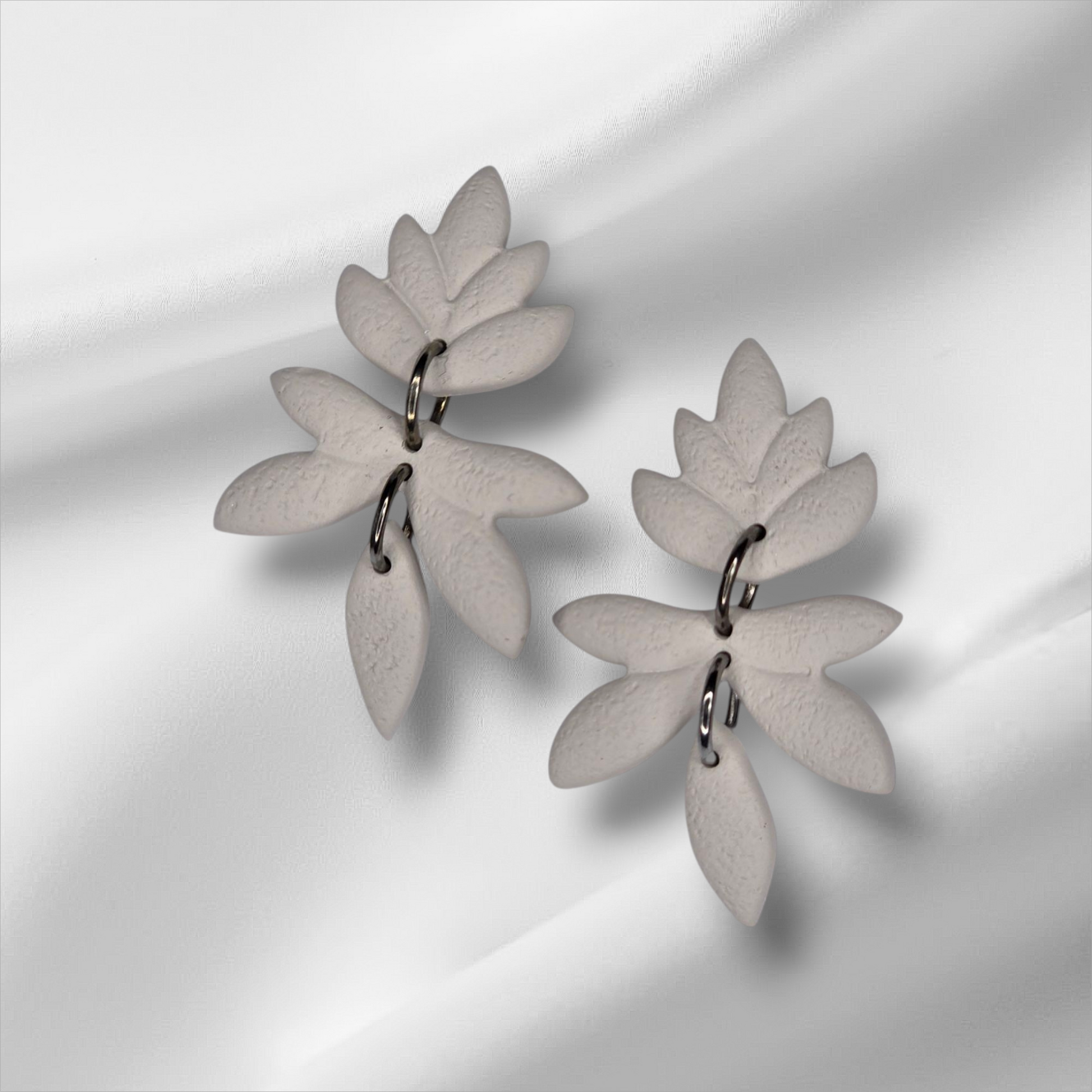 Expertly crafted with a soft grey hue and delicate tiered design, these Leaf Earrings add an elegant touch to any outfit. Made with quality materials, these earrings are lightweight and comfortable to wear, making them the perfect choice for both everyday wear and special occasions. All hardware is hypoallergenic for your safety.