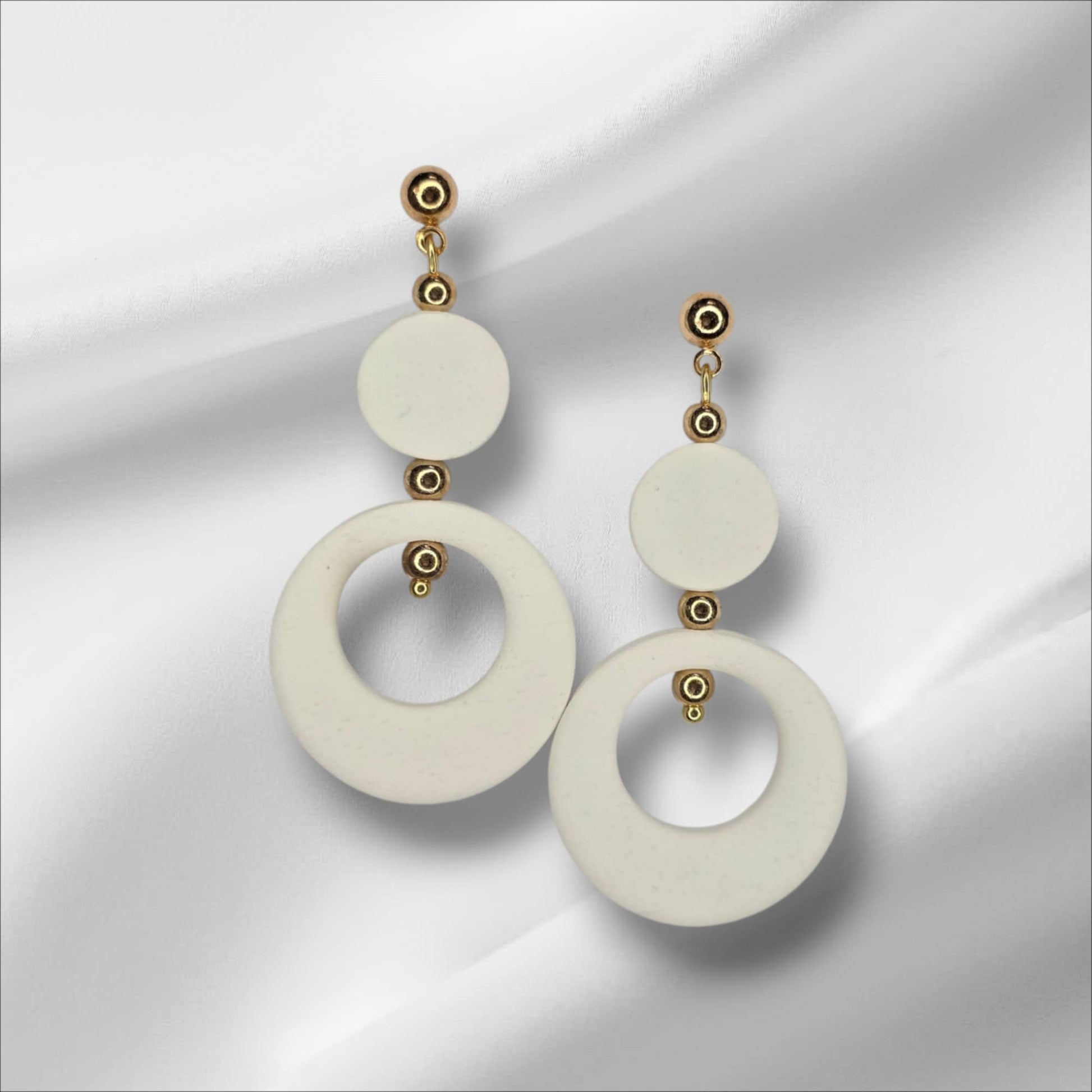 Elevate your style with our Two Tiered Circle Dangle earrings! These eye-catching earrings feature a unique two-tiered design that adds dimension and movement. Perfect for any occasion, these earrings will make a statement and elevate any outfit. Upgrade your jewelry collection with our Two Tiered Circle Dangle earrings today!